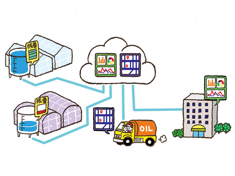施設園芸において欠かすことのできない暖房設備。そこで使われる重油や灯油など燃料の管理について、多くの場合、実際に生産者自身が燃料タンクの残量を目視で確認したり、配送担当者が担当エリアのタンク残量を1件1件現場に出向いて確認しているという現状がある。