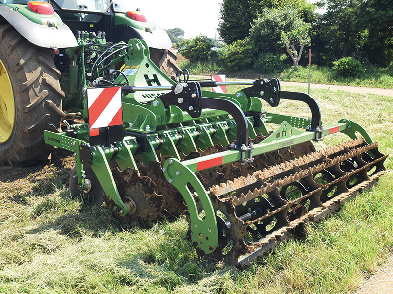それが三菱農業機械が2020年に輸入販売を開始した、ヒサルラー社製作業機『ラバータイプディスクハロー』だ。耕起作業をスピーディかつ省燃費で行うことができる。これまでも海外製の高性能なディスクハローは日本市場に入って来てはいたが、それらは大き過ぎたり、日本の圃場にマッチしない作りだったり、また極端に高価だったり、といった製品が多かった。三菱農業機械は、そこに目を付けた。高機能な海外製でありながら適価、そのうえ日本の圃場にマッチさせたディスクハローの輸入販売を決めたのだ。