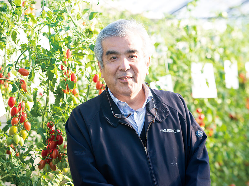 中玉トマトやミニトマトにオリジナル品種を持つ福井シードでは、クリーンルーム内で栽培した『ウイルスフリー苗』を販売しており、その育苗用にJMIのLEDを使っている。