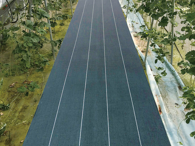 草刈りの手間を省くのは高密度に織られた防草シート。農業向け最上級スペックを誇り、耐候年数10年と耐久性にも優れている。透水性もあり、水たまりを防ぐ。防草クロス用固定ピンを1m間隔で使用すれば、長い間、草刈作業と決別できるだろう。