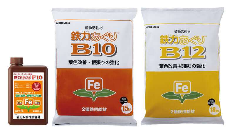 『鉄力®』シリーズは、あのトヨタグループに属する鉄鋼メーカー、愛知製鋼が販売するバイオスティミュラント(以下、BS)。まだBSという言葉が広く使われる遥か前、2003年に市販が開始された、日本が誇るBSの草分け的な存在だ。『鉄力』シリーズは、葉色改善による光合成促進、根張り強化による活着促進、生育促進・代謝正常化による生育維持、といった効果が期待でき、低温・低日照といった環境ストレスに対する植物の抵抗性を高めてくれる。
