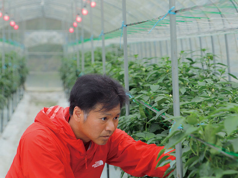 新しい栽培技術や最新のAIを積極的に取り入れ、全ての作業、資材、管理において効率化と費用対効果を思索しながらピーマン栽培を行なっている。