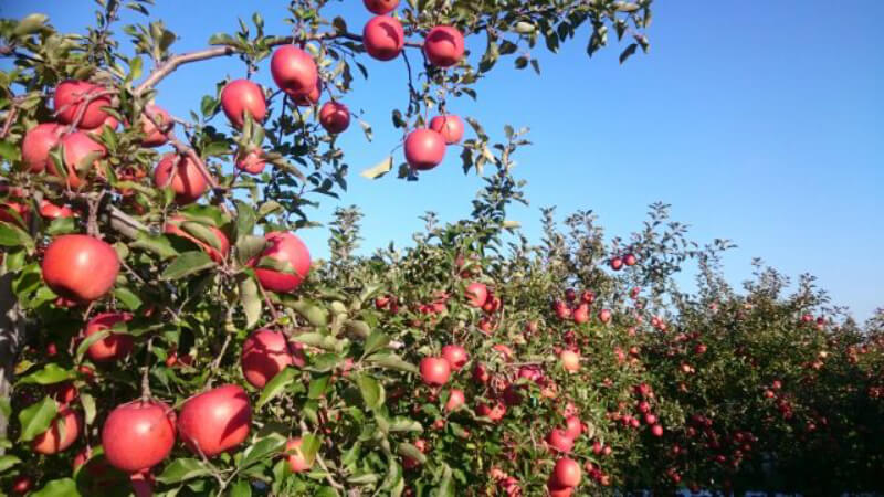 木村さんが管理する圃場。写真は、2019年10月下旬に撮影した主力品種の「ふじ」
