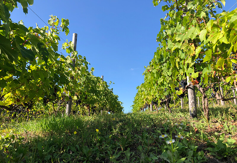 ワイン用ぶどうの圃場では、カバークロップをすでに実践。年々、土壌の状態が向上しているという。
