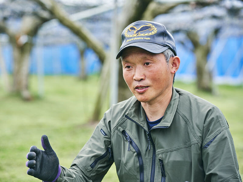「草刈りは体力的にもキツいため、雑草の勢いが弱い6月までは頑張れたんですが、7月になると作業が追い付かなくなってしまいまして……草丈が50cmを越えてしまい、遂には共同防除のSS(スピードスプレイヤー)が入れないほどでした。それが摘果不足→黒星病→減収、という悪循環をも招きました。そこで自動で草刈をしてくれる機械を探したところ、ホンダのロボット草刈機『グラスミーモ』に出会ったというわけなんです」