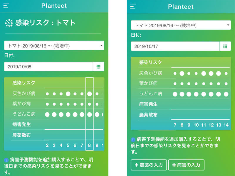 「一番期待していたのが病害予測機能。『プランテクト』を設置してから2ヶ月の間、病害予測表示を客観的に眺めることができました。日増しに危機が高まって行く様子が分かったので、来期はお知らせ内容を確認しながら、計画的な農薬散布ができると確信しています。