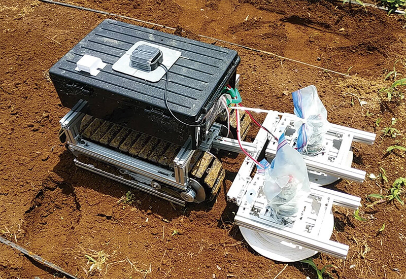 組み立てて取り付けることで、なんでもすぐに移動ロボット化させることができる電動クローラユニットに注目が集まっている。このユニットを用いて開発され、実際に農地で活躍しているロボットをご紹介しよう。