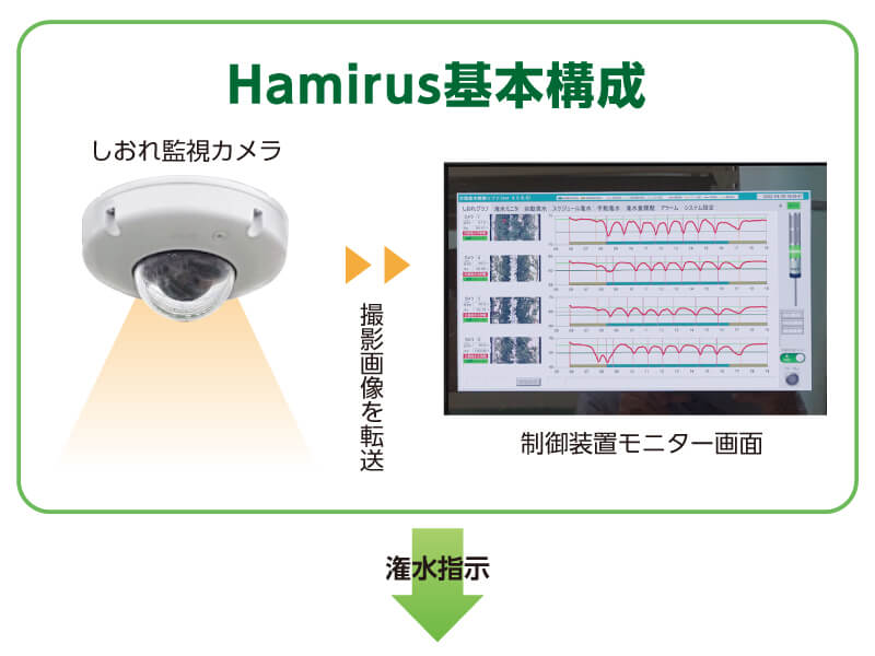 Hamirusでは、しおれ監視カメラが植物を一定時間ごとに撮影し、撮影した画像データを元にAIを利用しながらしおれ率としてグラフ化。目標糖度に合わせて任意に設定したしおれ率になると自動で潅水が実施される。系統ごとに、潅水時間・しおれ率を変えることも可能なので、高品質重視や収穫量重視など目的に応じた潅水ができる。最大6台のカメラでハウス内を測定することが可能だ。